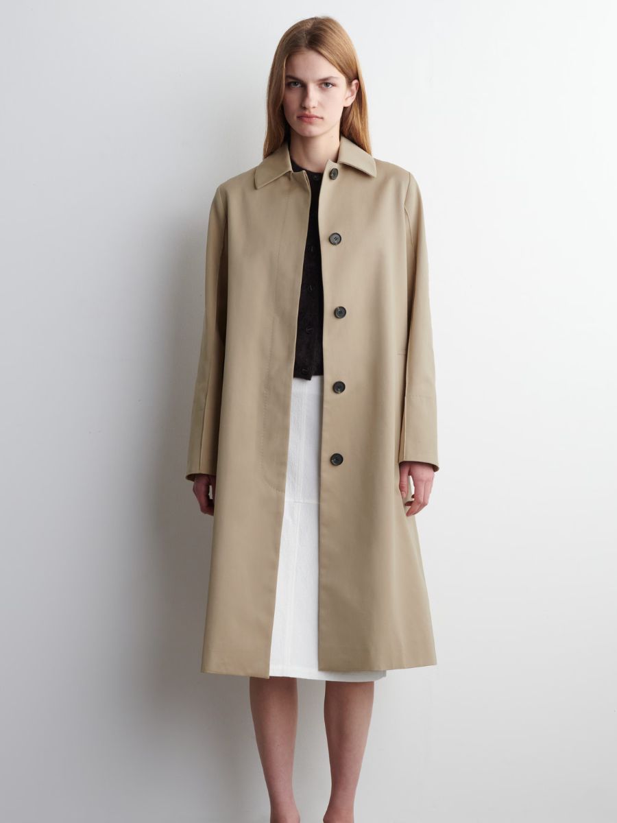 Taupe A-line car coat, €1,240; www.toteme.com.