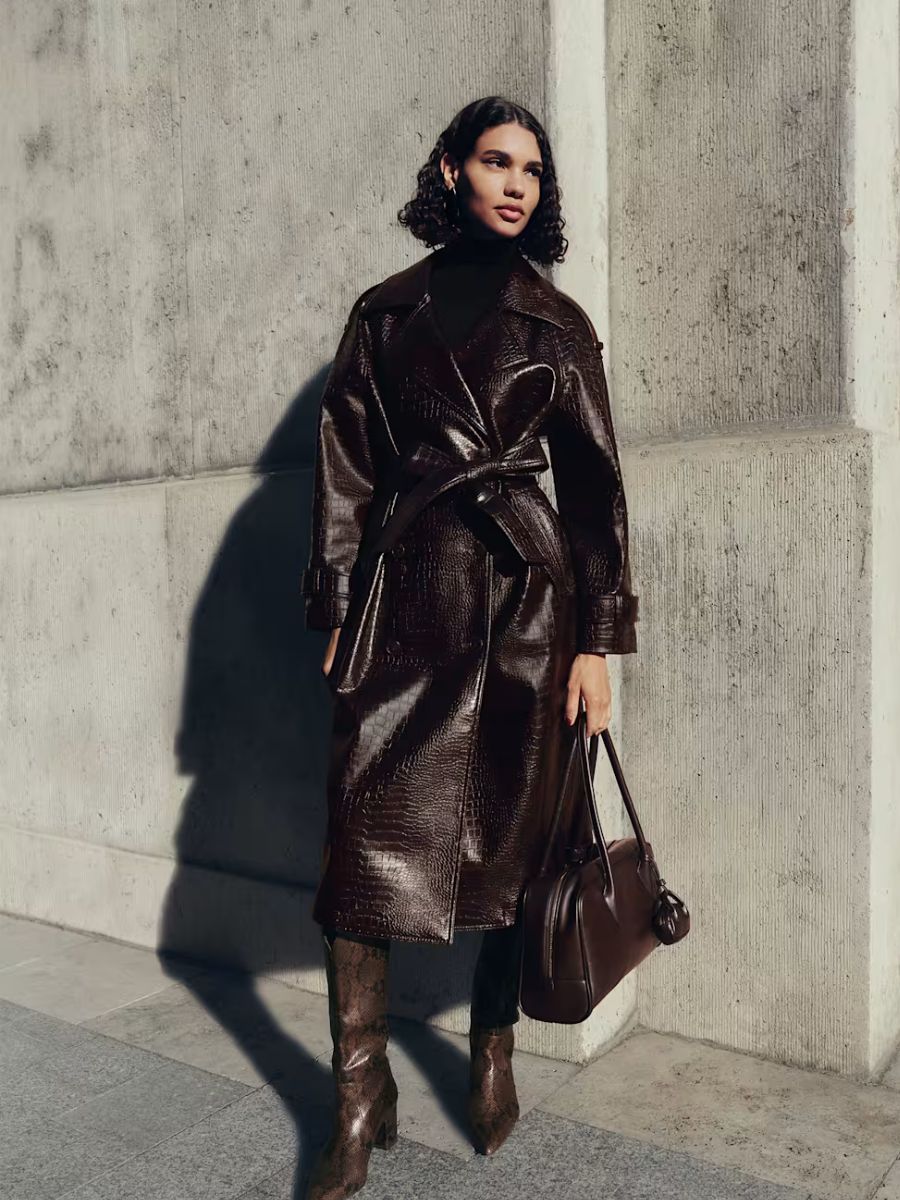 Meanwhile, the host of shorter shapes feels refreshing. (Note Sézane’s shorter length Gabrio jacket with its removable hood: it’s sure to be a sell-out.) Lastly, thank the ongoing love affair with suede for the amount of textured options on the market. Suede coats in shades of bitter chocolate are hot-ticket buys for autumn – see Monsoon, Nour Hammour and The Frankie Shop for stylish nods – while the more familiar high-shine fabrications (a nod to 1960s wet look and wipe-clean jackets) are ceding in popularity to technical fabrications. Shop an edit of the best trench coats for AW25 below.