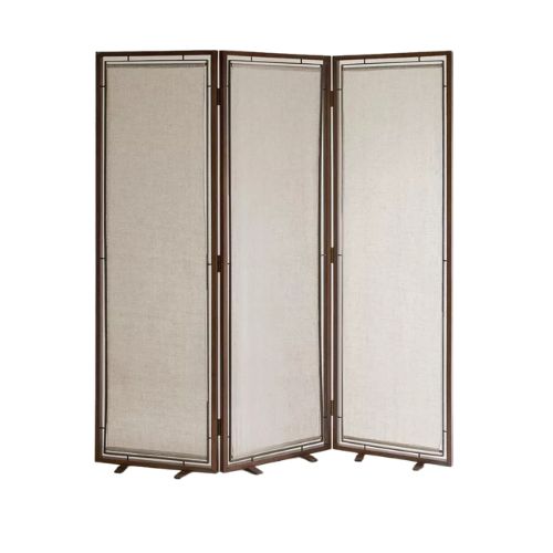 Brown wood and linen folding screen, €329