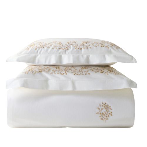 White percale cotton duvet cover with embroidered flowers, from €99.99