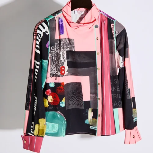 Greatest Hits print front fastening blouse, €120, at Dunnes Stores