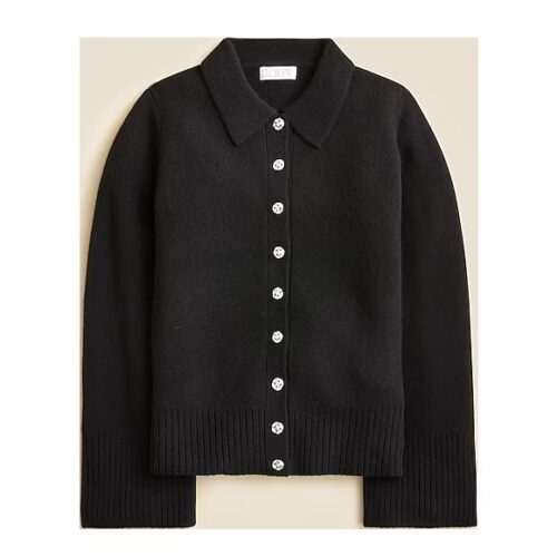 Black Milano-stitch cinched-waist cardigan with embellished buttons, €200