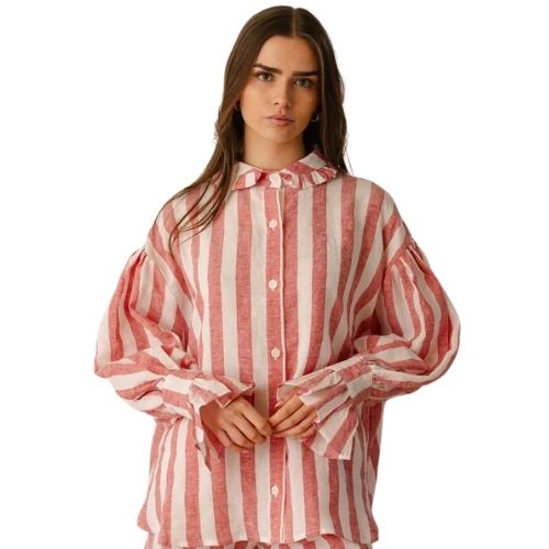 Red and white picnic stripe Irish linen blouse, €421.95