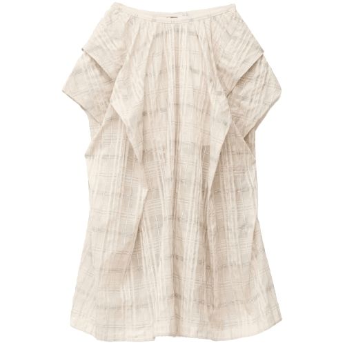 Off white check gathered cotton midi skirt, €149