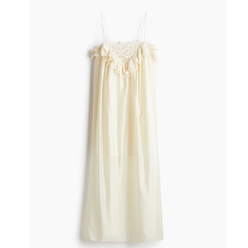 Cream lace-trimmed slip dress, €49.99, at H&M