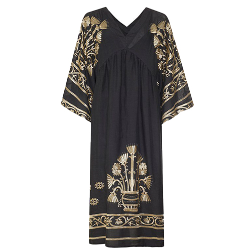 Black and gold Crete sun dress, Greek Archaic, €298, at Rococo