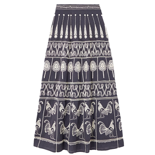 Blue Camille embellished embroidered cotton-blend maxi skirt, Emporio Sirenuse, €1,300, at Net-A-Porter