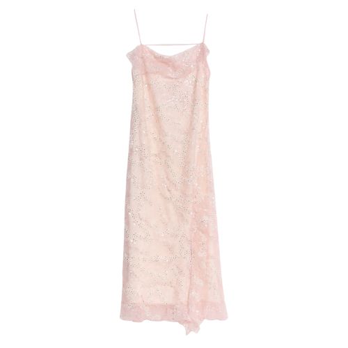 Pink embellished lace frill midaxi column dress, €175, at M&S