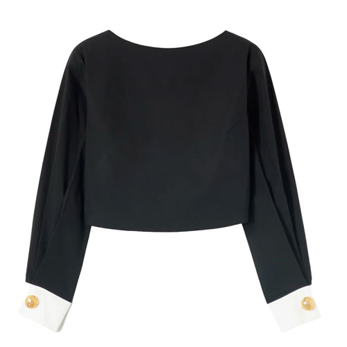 Black cotton top with white embellished cuffs, Destree, €350, at Gallery 9