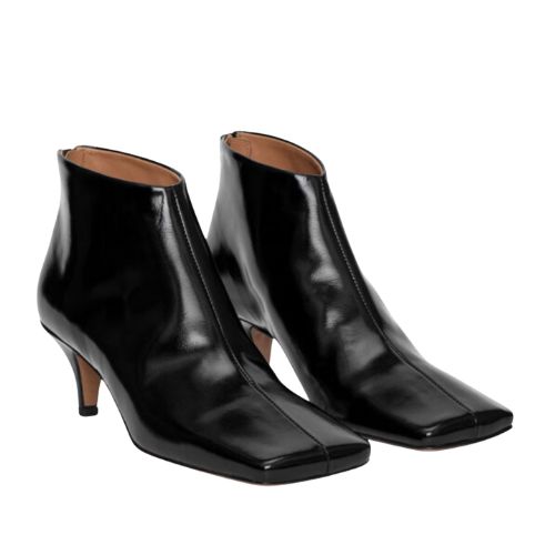 Black glossy leather ankle boots, €249