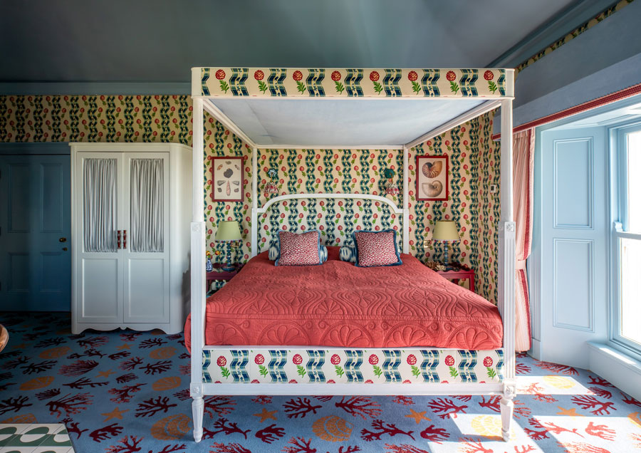 Armada House has reopened after a three-year transformation by interior designer Suzie McAdam. The 13-bedroom property, adjacent to the Armada Hotel, has had an interesting history, formerly a landlord’s home and convent boarding school. Now it has been transformed with interiors inspired by colours of the distinctive flora of The Burren and hues of the Atlantic Ocean to create a calm aesthetic. “Bold Luxury” is the hospitality concept says John Burke, chief executive of Armada. Guests have much to admire, from hand-painted murals by Michael Dillon, wallpapers by Pierre Frey, bespoke furniture created with John O’Connell Furniture, and artworks from Irish artists such as Mick O’Dea, Geraldine O’Sullivan, Rosie Lynch and Katherine Halford Greene. The vibe is cosmopolitan but also rooted in Ireland – bedlinen is by Inish Living, with chocolates from Grá Chocolates and welcome drinks by Armada Cocktail Lab. Music is central to the guest experience: acclaimed artist Susan O’Neill has created the playlists and there are regular live performances at the neighbouring hotel. Guests can also enjoy a programme of complimentary experiences including wine tastings, Irish coffee making, cookery demonstrations, yoga sessions, guided shore walks and sauna experiences. To celebrate this new opening, overnight rates start from €450 per night, based on two adults sharing a seaview suite which includes breakfast and Perrier-Jouët champagne. @armadaspanishpoint
