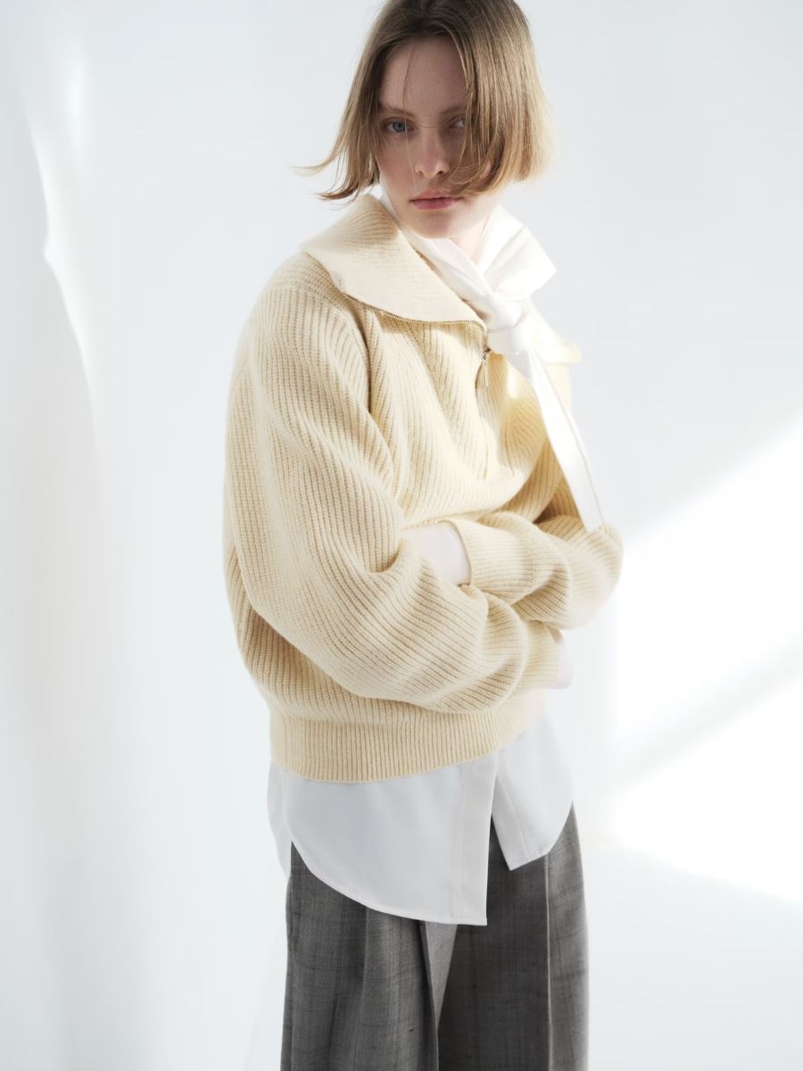 Light yellow half-zip knitted jumper, €39.99, at H&M.