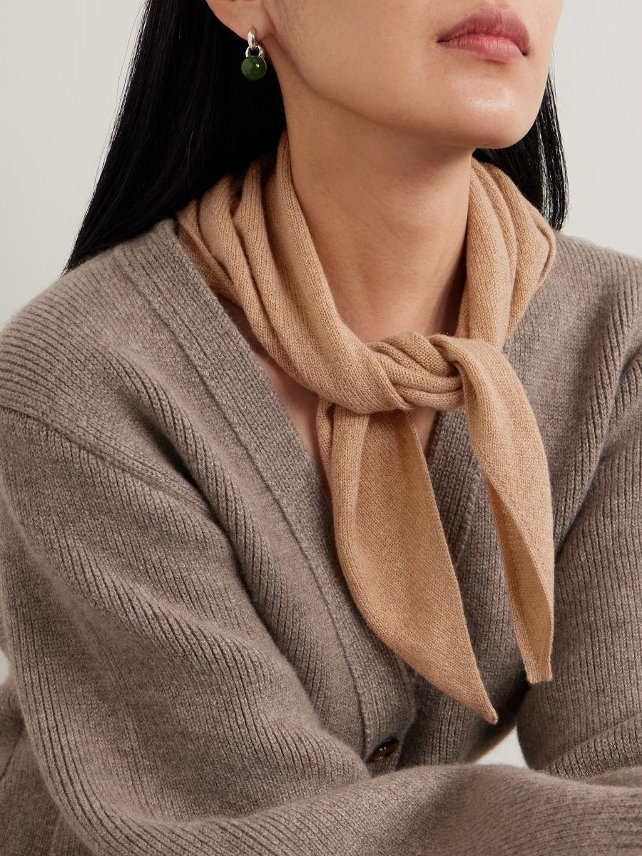 Camel cashmere scarf, Johnstons of Eglin, €170; www.net-a-porter.com.