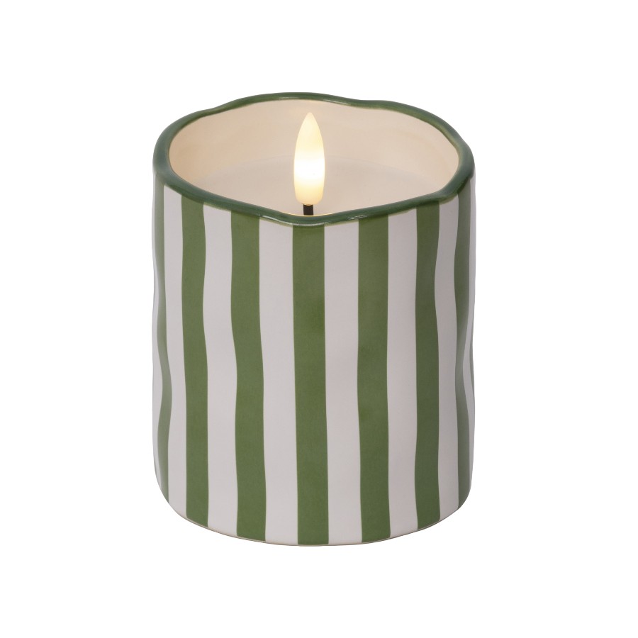 Green and white striped LED candle, €11, at EZ Living Interiors.
