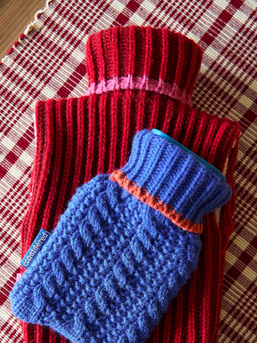 Blue mini hot water bottle, Considered by Helen James, €8, at Dunnes Stores.