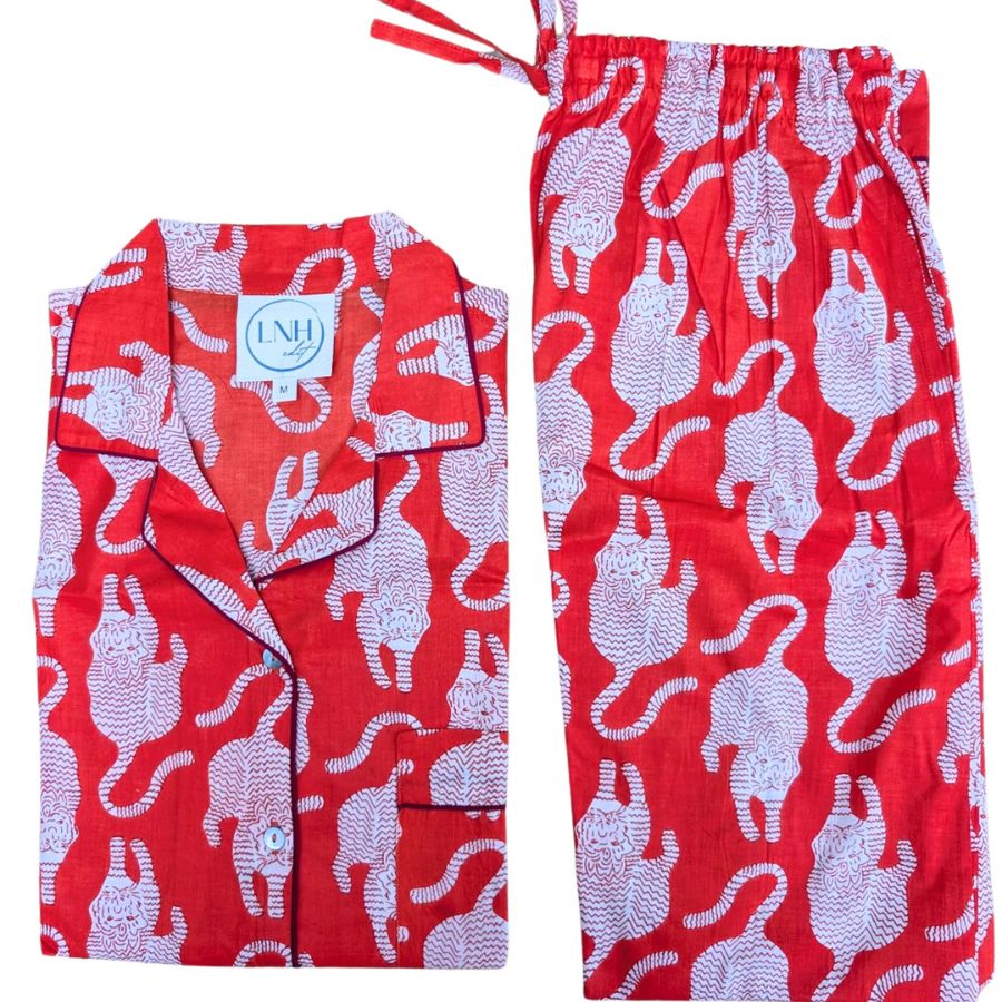 Red animal motif cotton pyjamas, €85; www.lnhedit.com.