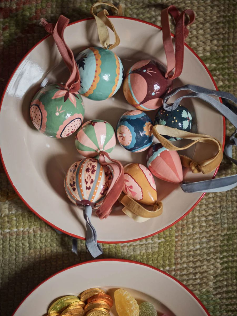 Multi-coloured hand-painted decorations, €62 for nine; www.rowenandwren.co.uk.