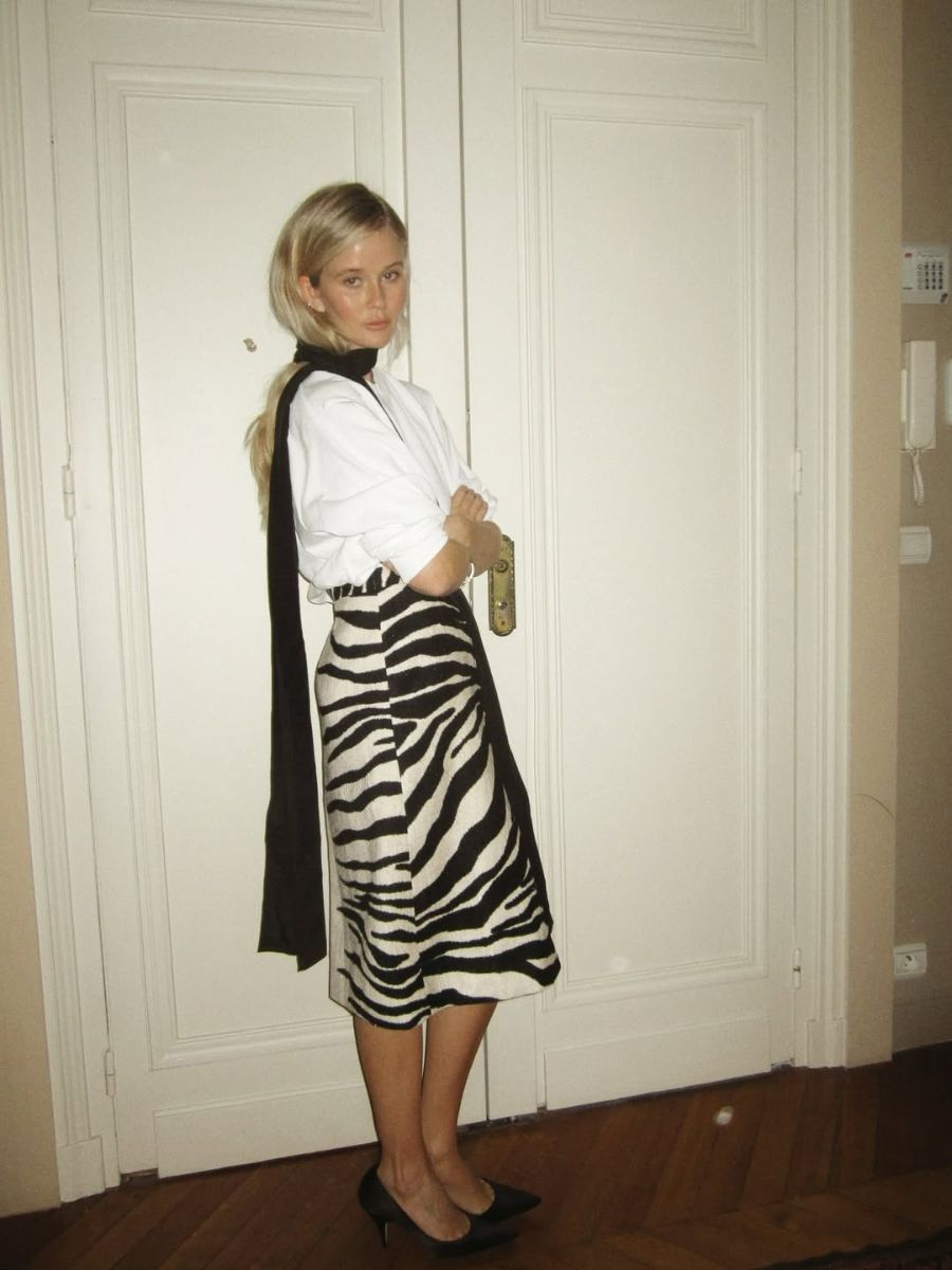 Equally, wear a statement animal print skirt with a white shirt for a healthy high-low dressing mix.