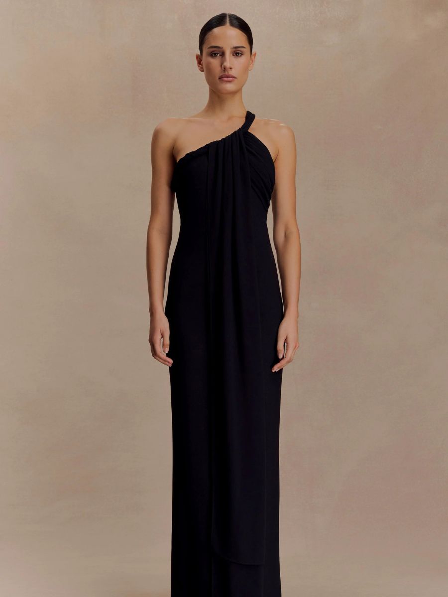 Black Philippa knotted crêpe maxi dress, €179; www.meshki.co.uk.