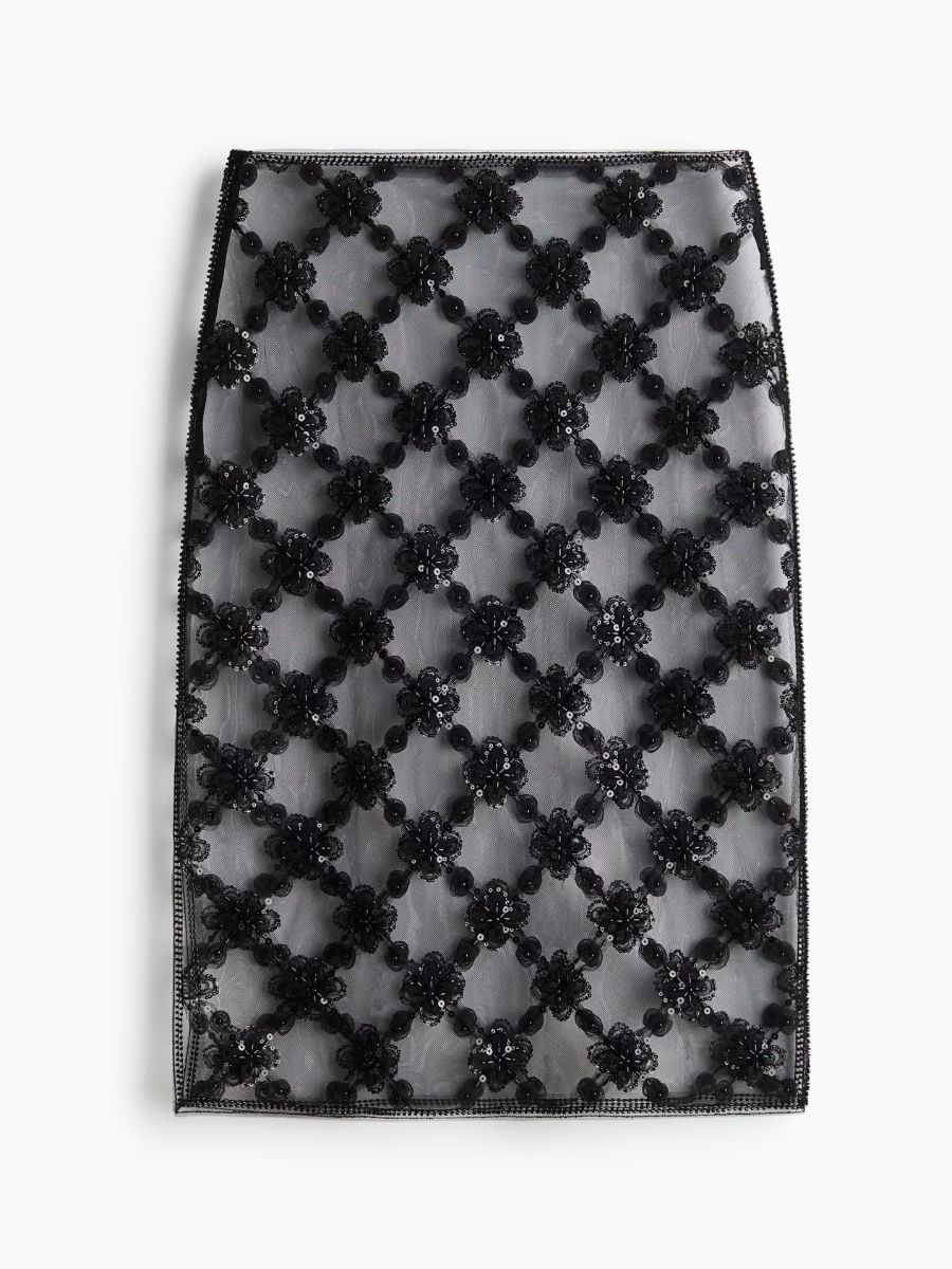 Brown satin embellished A-line skirt, M&S Collection, €54, at Marks & Spencer.