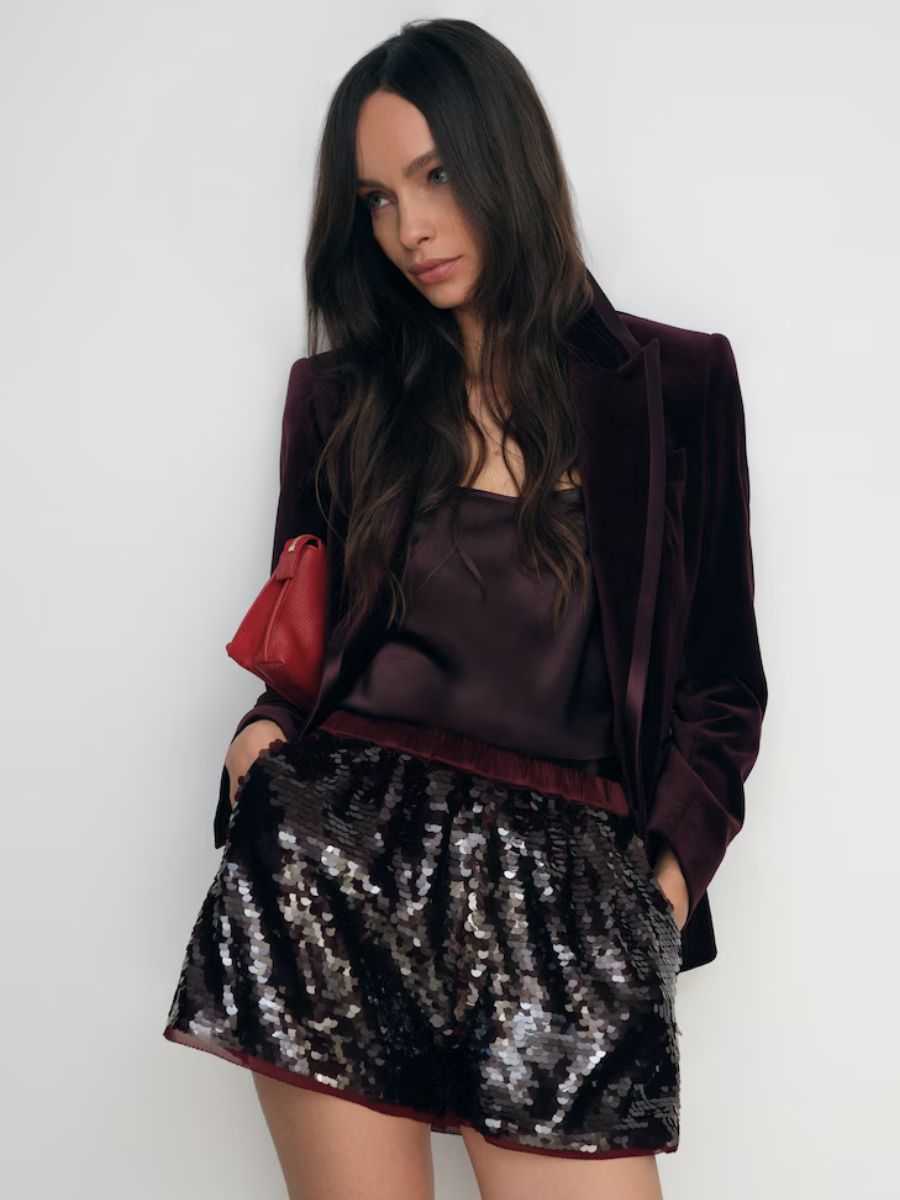 “My hero party buy this season is a pair of sequin shorts from Reiss which are the perfect mix of playful and polished. I’ll be wearing them with sheer tights, heels and an oversized knit. Cosy up top, disco on the bottom!” @kimturkington_