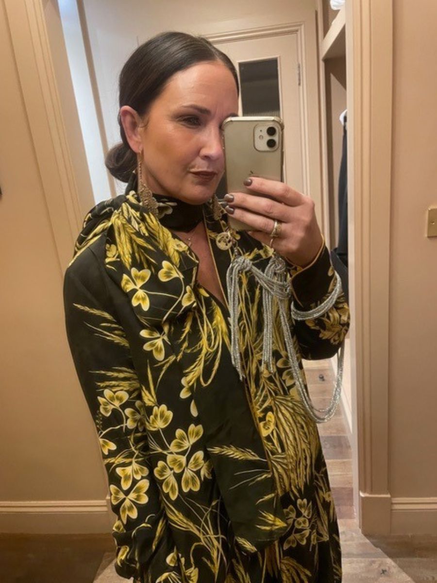 “In our business, our day look needs to be elevated so it can be difficult to feel dressed up going out at night. This season, my go-to pieces are printed separates by For Restless Sleepers. I love to throw the brand’s long, velvet coat over on top which is a bit dressing gown-ish. I feel totally me wearing that kind of look: it still feels ‘fashion-y’, it’s effortless and pyjama-like and, more importantly, it’s unlike anything I would wear to work.” Meanwhile, co-founder of Kalu Kate O’Dwyer notes show-stopping dresses by brand The 2nd Skin Co as her favourites as they are “glamorous, fun, and full of personality”. @emporium_kalu