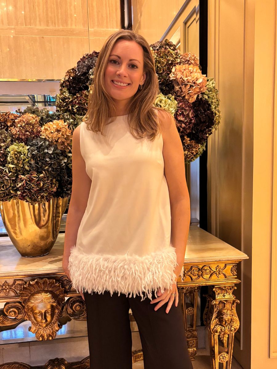 “My hero party dressing piece this season comes from none other than Marks & Spencer. A sparkly mini skirt never fails at this time of year and I love the quilted effect of this one. The chocolate shade is a chic alternative to black; the colour really elevates the piece. And, as my style tends to be quite high/low, I have been pairing it with a crisp white shirt (if you want a niche reference, Carrie Bradshaw in season 4 episode 9 of Sex and the City served as my inspiration) or an oversize cashmere sweater. I’ve even been wearing it with boots during the day and then swapping those out for sky-high heels at night – it’s the perfect desk-to-dinner piece.” @natashasherlingjewellery