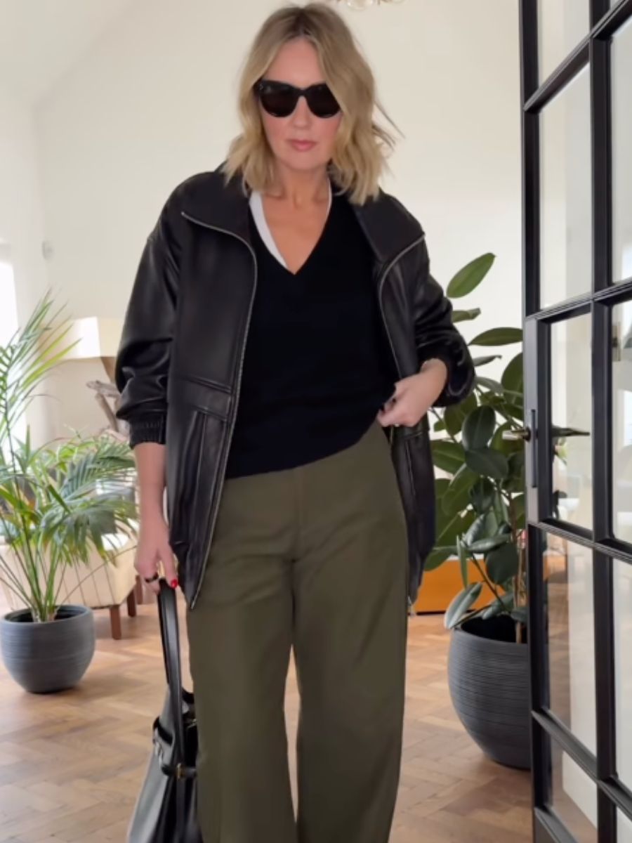 According to style influencer Emma-Rose Thatcher, the best date night look involves a cashmere V-neck jumper, khaki trousers and leather square-toe boots: we agree!