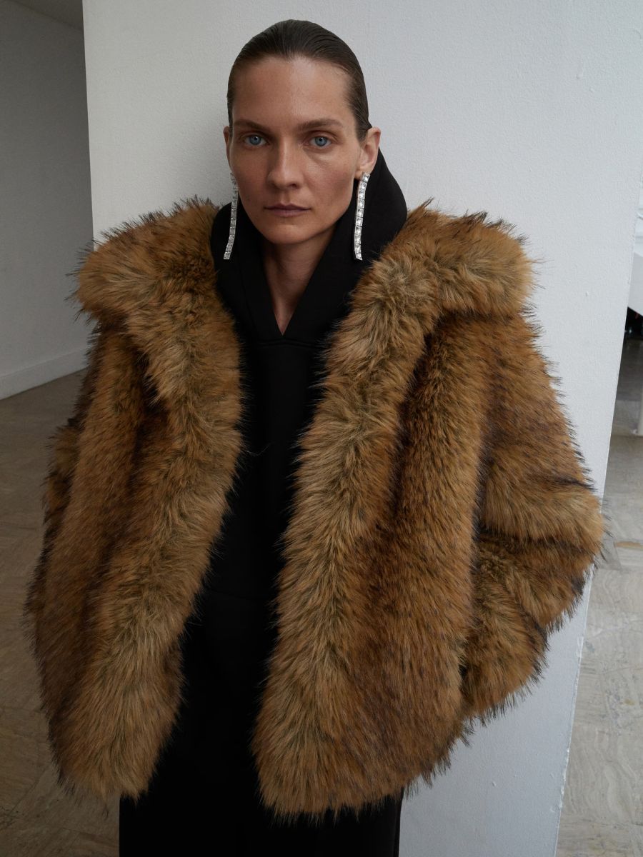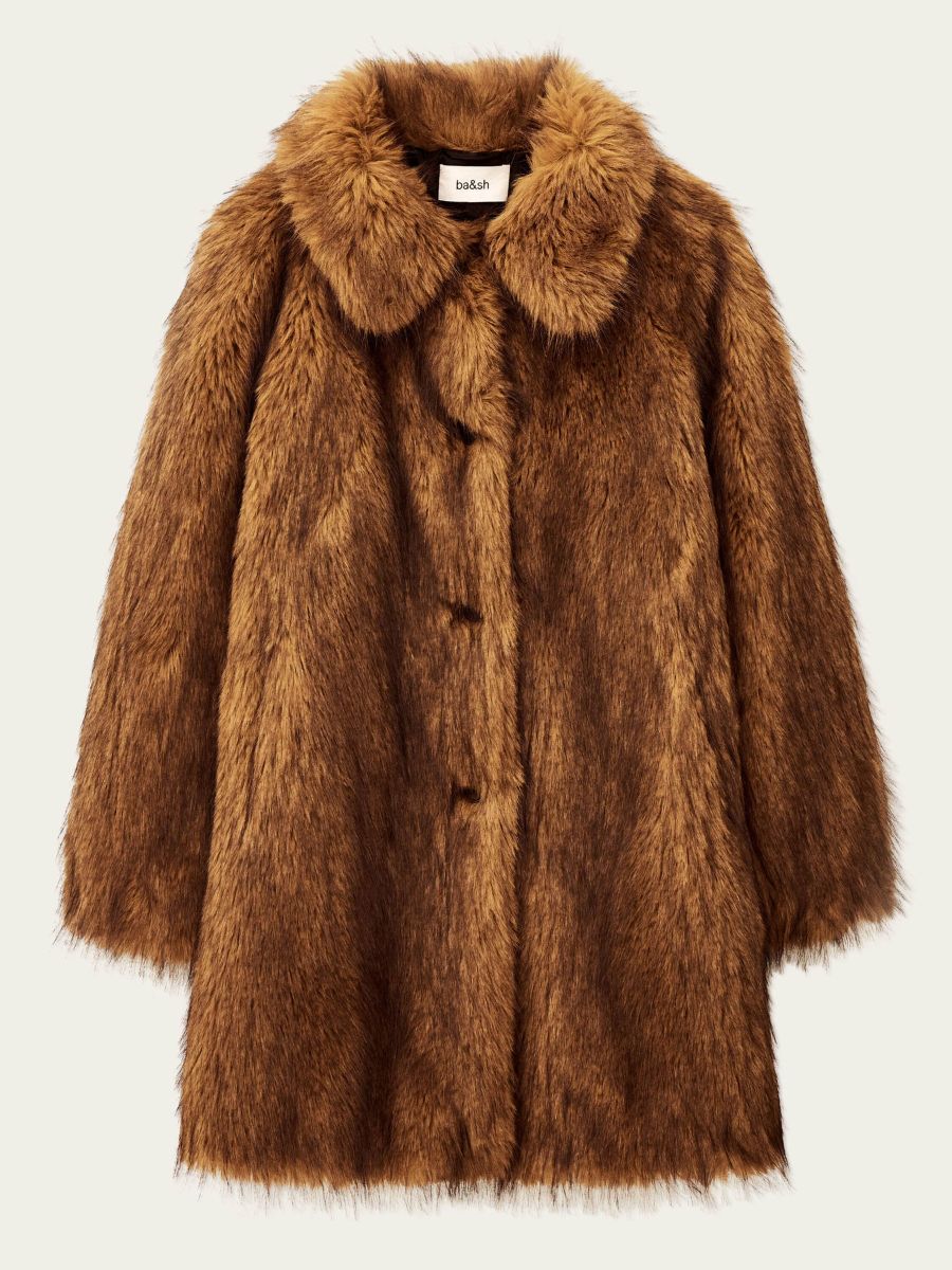 Brown Lestor faux fur coat, €385; www.ba-sh.com.