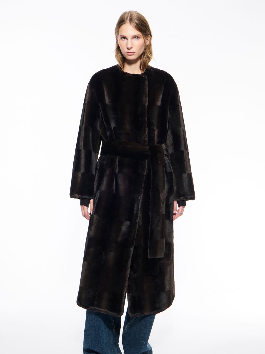 Brown Isa belted faux fur coat, Stand Studio, €630, at Brown Thomas.