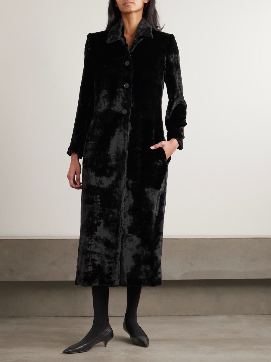 Black Batani crushed velvet coat, The Row, €9,620; www.net-a-porter.com.