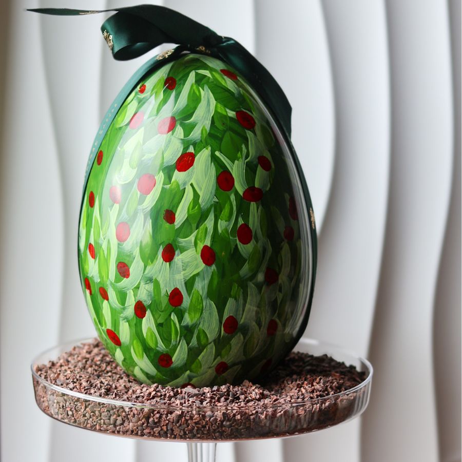 Ashford Castle’s Easter Egg (€70) is handprinted with greens and red to reflect the last apple tree planted over a century ago by the Guinness family when they called the castle home. This masterpiece was designed by Paula Stakelum, Global Director of Chocolate & Patisserie at Red Carnation Hotels. @ashfordcastle @paula_pastry