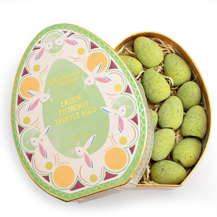 Charbonnel et Walker Pistachio Truffle Eggs (€33) come with a keepsake box, from a selection at Avoca.