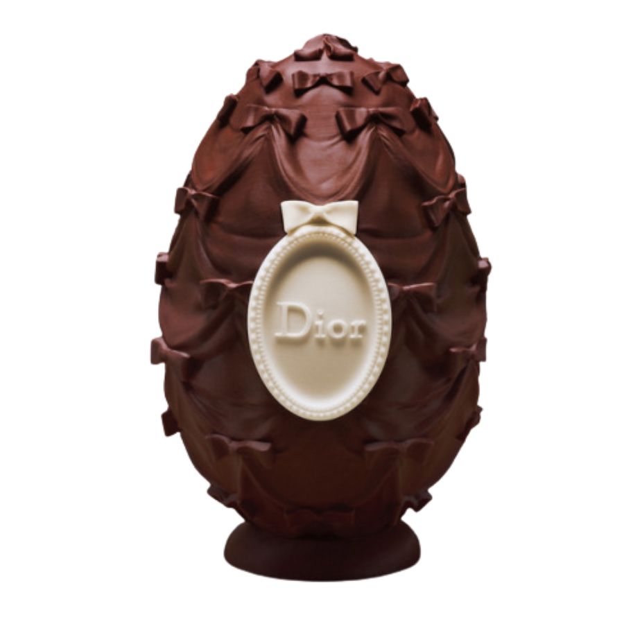 Dior dark and white chocolate egg (€180), made by Michelin-starred chef Yannick Allen, was inspired by the iconic medallion and signature bow of the House. Inside are over 40 pieces of chocolate including buttons, candied almonds, puffed rice praline and hazelnuts. It’s exclusive to taste at 30 Avenue Montaigne, Paris. @dior