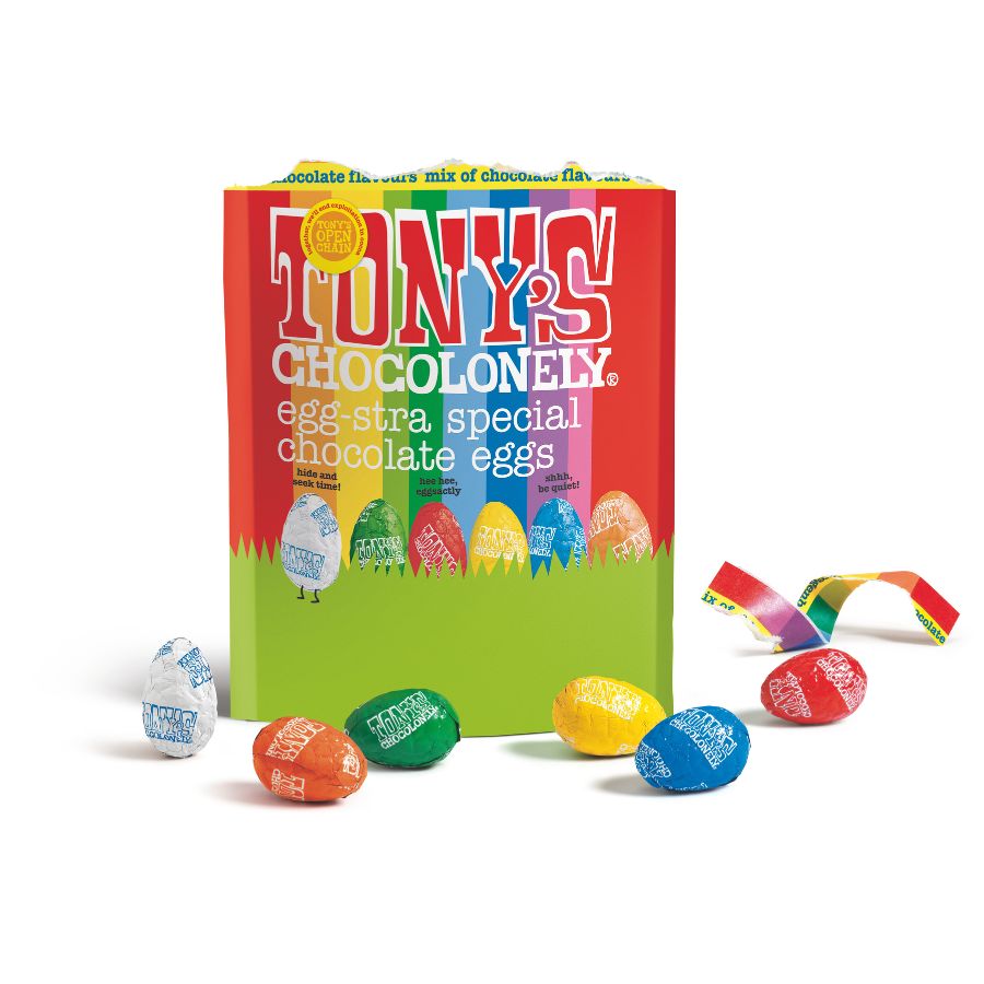 Tony’s Chocolonely Easter Pouch (€5.75) with 20 mini eggs in eight flavours are perfect for Easter hunts, gifting or sneaky snacking! @tonyschocolonely_uk_ire