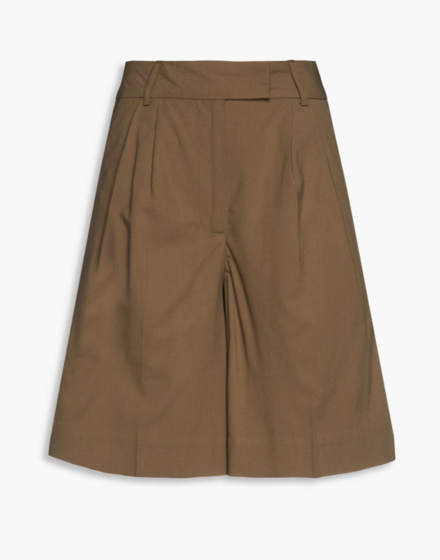 Khaki pleated high waisted shorts, Remain Birger Christensen, €77; www.theoutnet.com.
