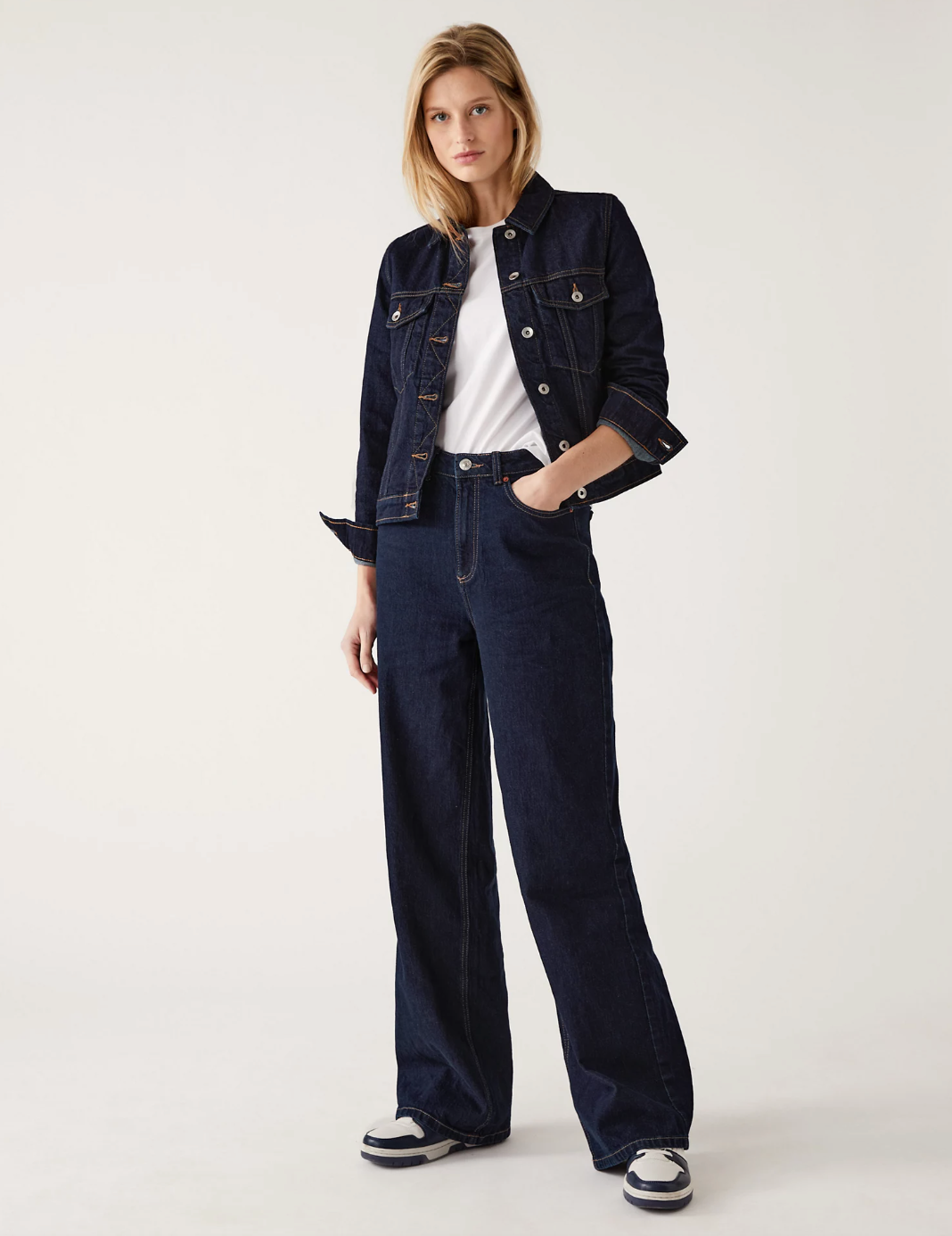 Indigo pure cotton denim jacket, €55; www.marksandspencer.com.