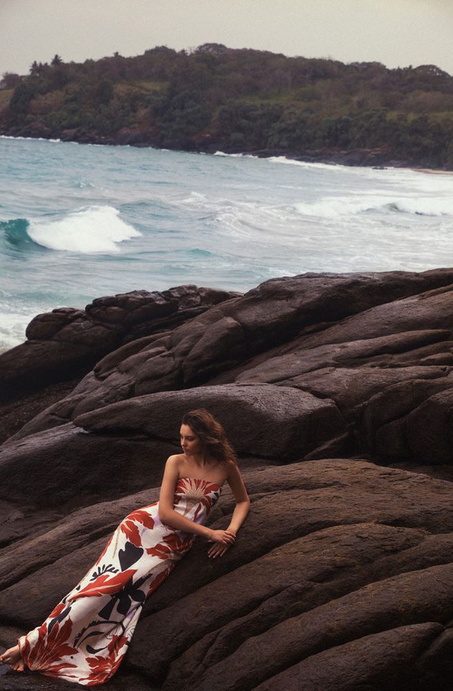 Strapless patterned dress, €273.60; www.secondsummerlabel.com.