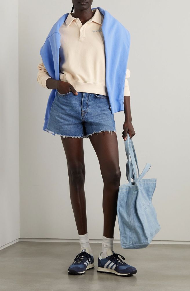 Embroidered cotton polo throw on top, Sporty & Rich, €185; www.net-a-porter.com.