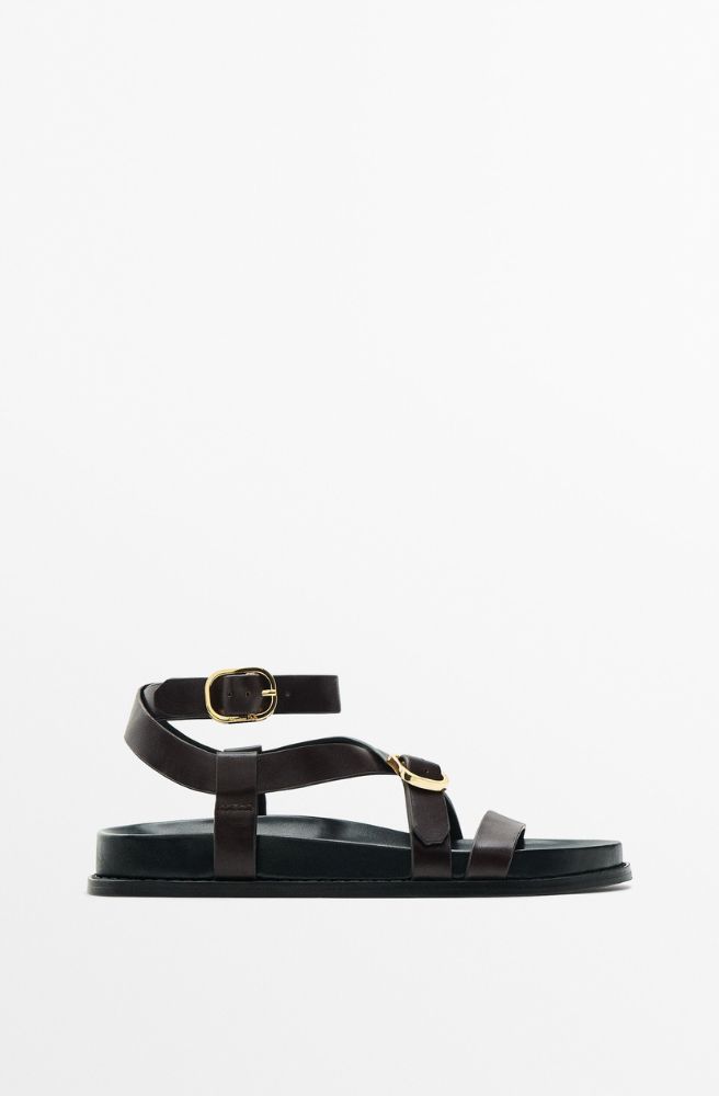 Flat strappy sandals with buckles, €99.95, at Massimo Dutti.