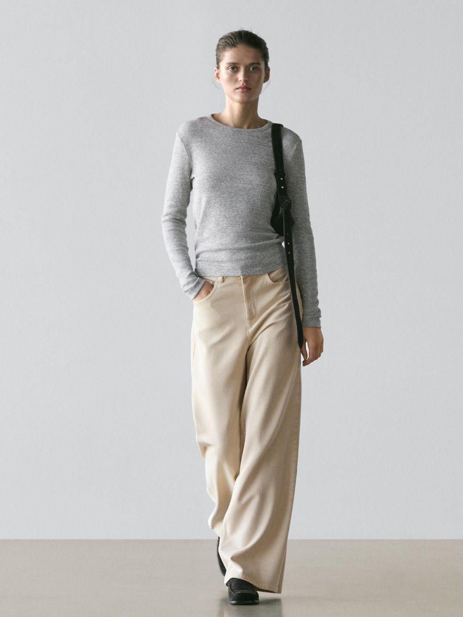 Vanilla low-rise wide-leg trousers, €80, at Massimo Dutti.