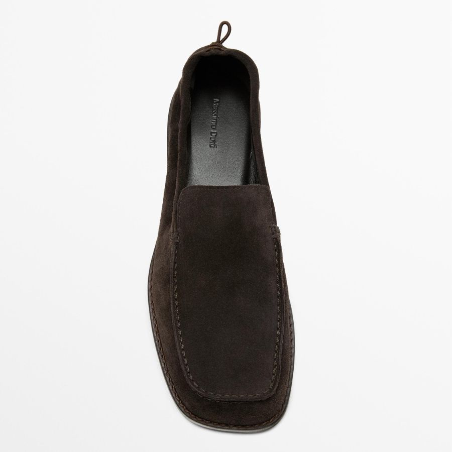 Brown soft leather loafers with gathered details, €130, at Massimo Dutti.