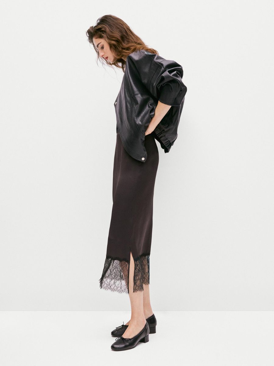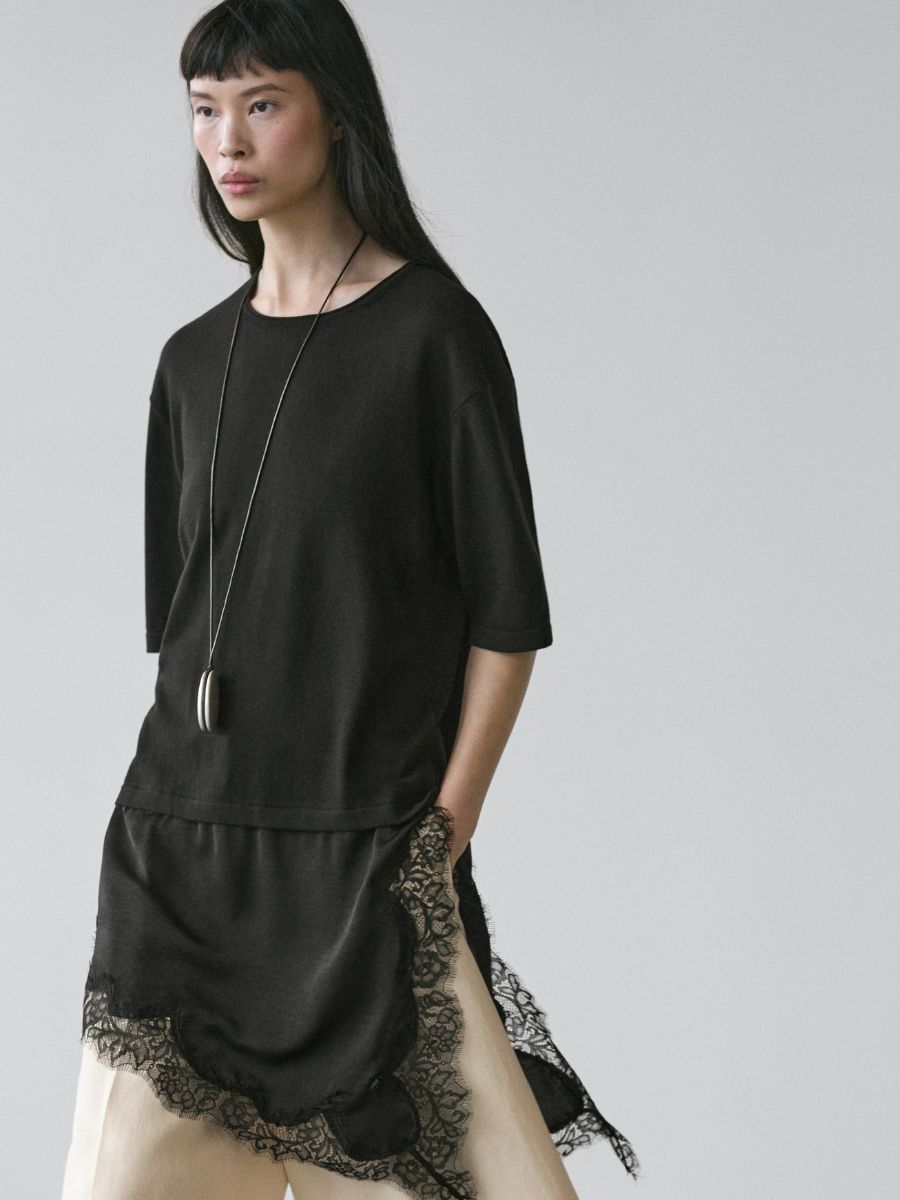 Black dress with lace-trim detail, €80, at Massimo Dutti.
