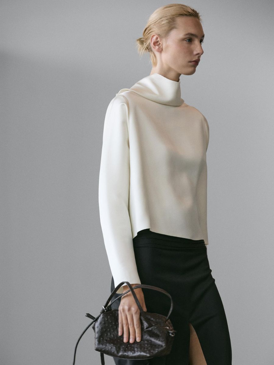 Cream flowing blouse, €150, at Massimo Dutti.