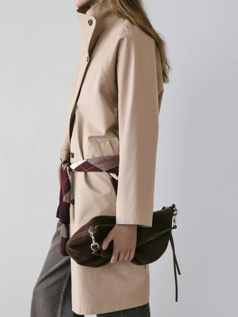 Beige cotton trench coat, €230, at Massimo Dutti.