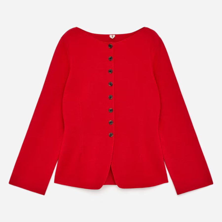 Red merino wool cardigan, €99, at Arket.