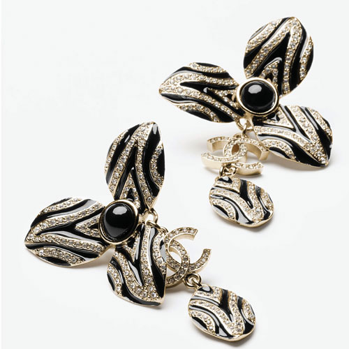 Black glass and rhinestone cocktail earrings, Chanel, €1,820, at Brown Thomas.
