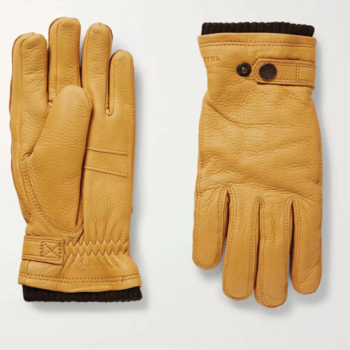 For Him: Mustard Utsjö fleece-lined leather gloves, Hestra, €105; www.mrporter.com.
