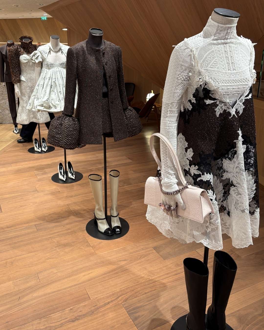 12:30 The afternoon was defined by a triumvirate of Irish talent with visits to the showrooms of Simone Rocha, Maria McManus and Sphere One. Simone Rocha first presented her AW26 collection at London Fashion Week. Her distinct universe spanned mythology and modernism from Tír na nÓg to Adidas Originals. There is the sense, leafing through rails of embroidered organza, blood red sequin dresses and slashed tailoring embellished with crystal flowers, that Rocha is sure as ever of who she is and what her brand stands for.