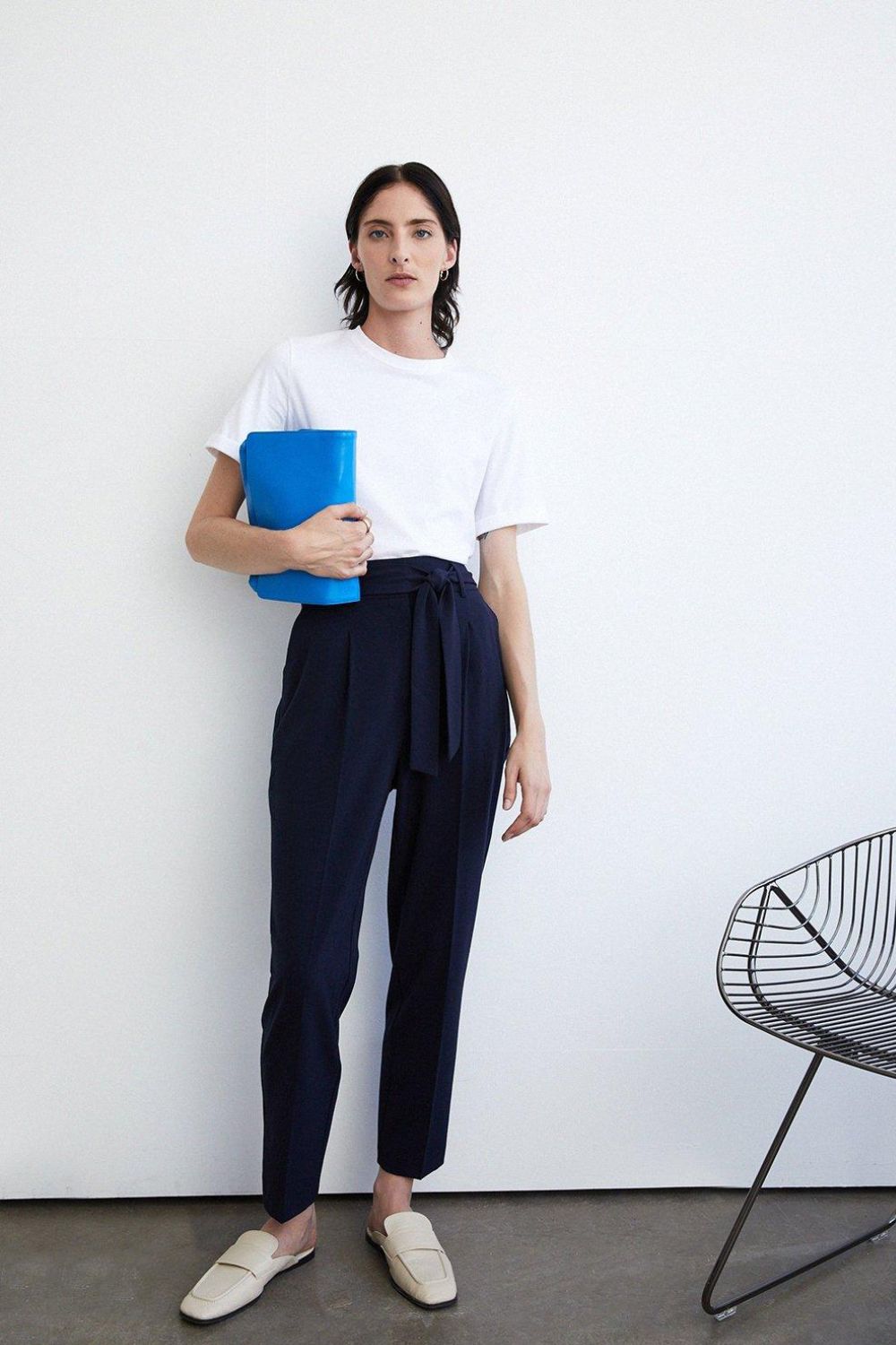 Navy tie-waist cropped trousers, €44, at Warehouse.